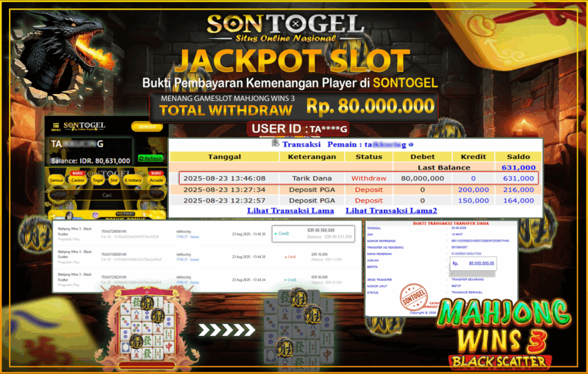 JP SONTOGEL SLOT MAHJONG WINS 3 Rp.80.000.000