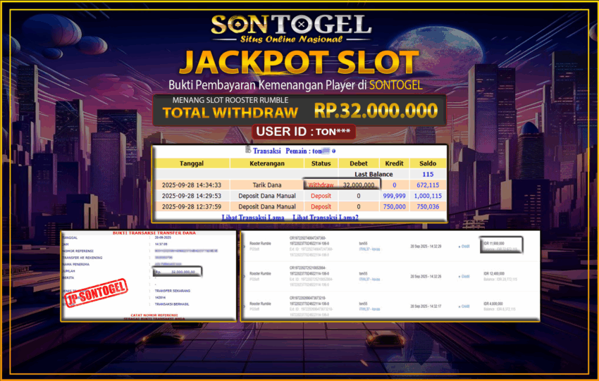 JP SONTOGEL SLOT ROSSTER RUMBLE Rp.32.000.000
