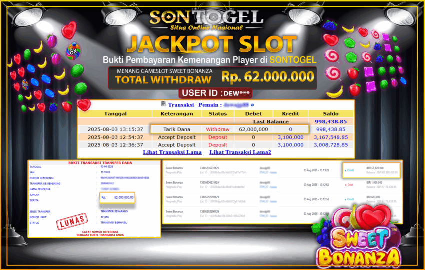JP SONTOGEL SLOT SWEET BONANZA Rp.62.000.000
