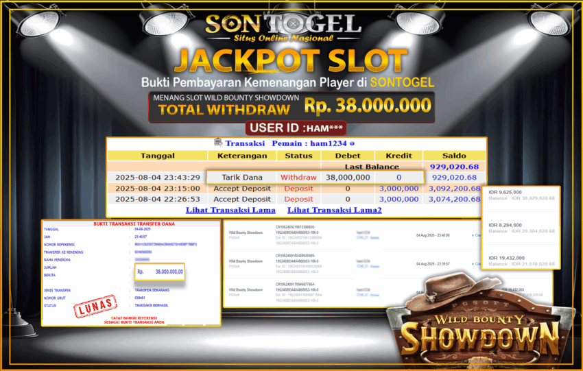 Berikut ini adalah BUKTI JP SONTOGEL yang sudah diproseskan ke rekening member kami