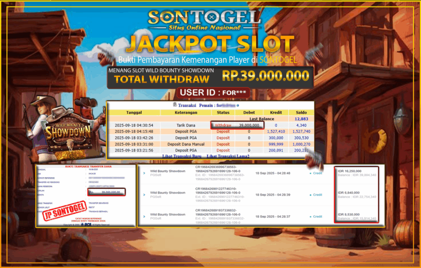 Berikut ini adalah BUKTI JP SONTOGEL yang sudah diproseskan ke rekening member kami