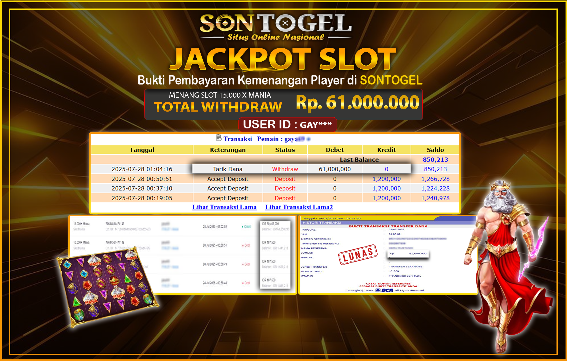 JP SONTOGEL SLOT 15.000 X MANIA Rp.61.000.000